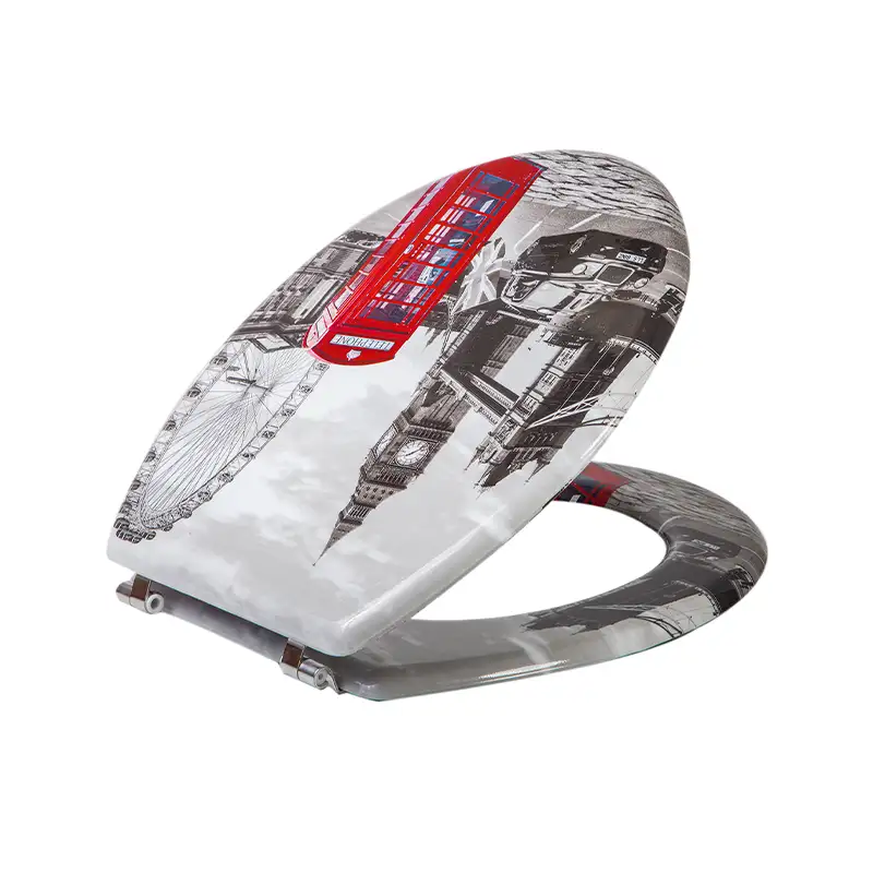 מושב אסלה עץ MDF בדוגמת לונדון.
