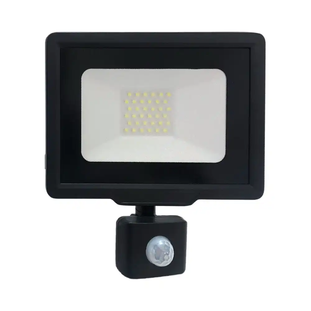 פנס הצפה שחור MIRAGE 50W IP65 עם חיישן – אור קר